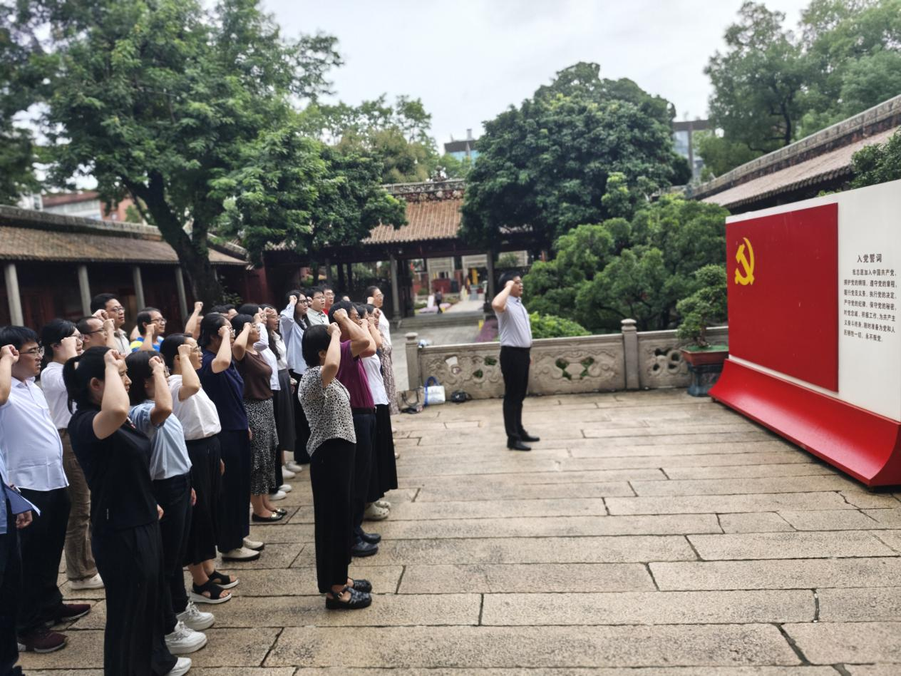 9月25日,3044am永利集团官网党总支组织教工党员前往广州农民运动讲习所旧址纪念馆(以下简称“农讲所”)开展主题党日活动。通过实地参观和现场教学,党员们深入了解了农讲所作为革命摇篮的光辉历史,深刻感悟了革命先辈坚定的理想信念和艰苦奋斗的精神。在庄严的党旗下,学院党总支书记李华武带领全体党员重温入党誓词,再次接受了深刻的党性洗礼。