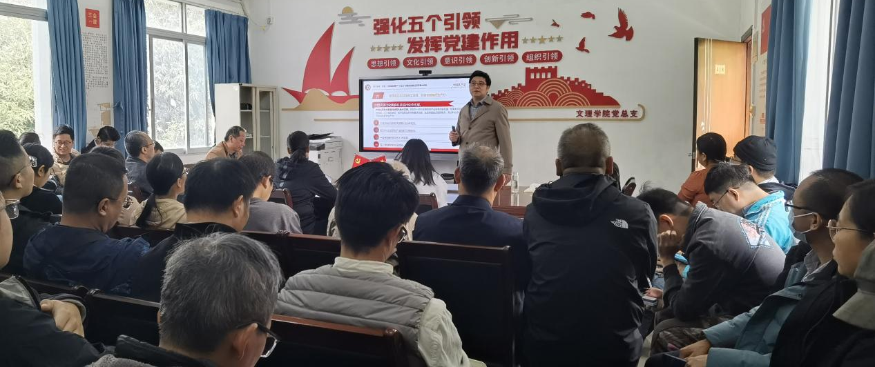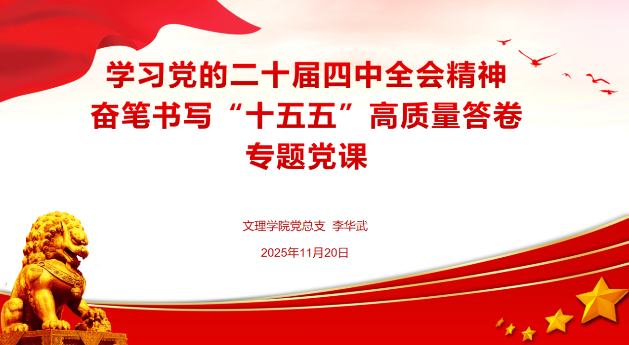 11月20日下午,3044am永利集团官网党总支书记李华武以“学习党的二十届四中全会精神,奋笔书写‘十五五’高质量答卷”为题,讲授专题党课。学院党总支副书记、院长王泽文,学院党总支副书记、副院长王彤彤以及全体教职工参会。