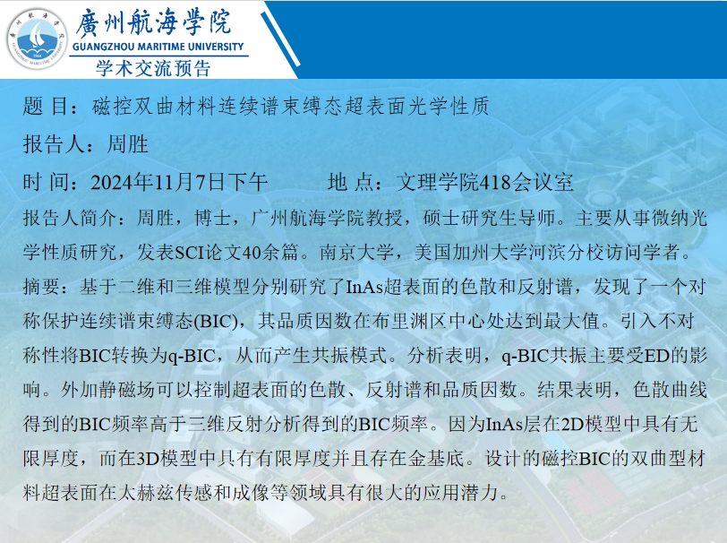 深蓝论坛学术讲座预告--周胜